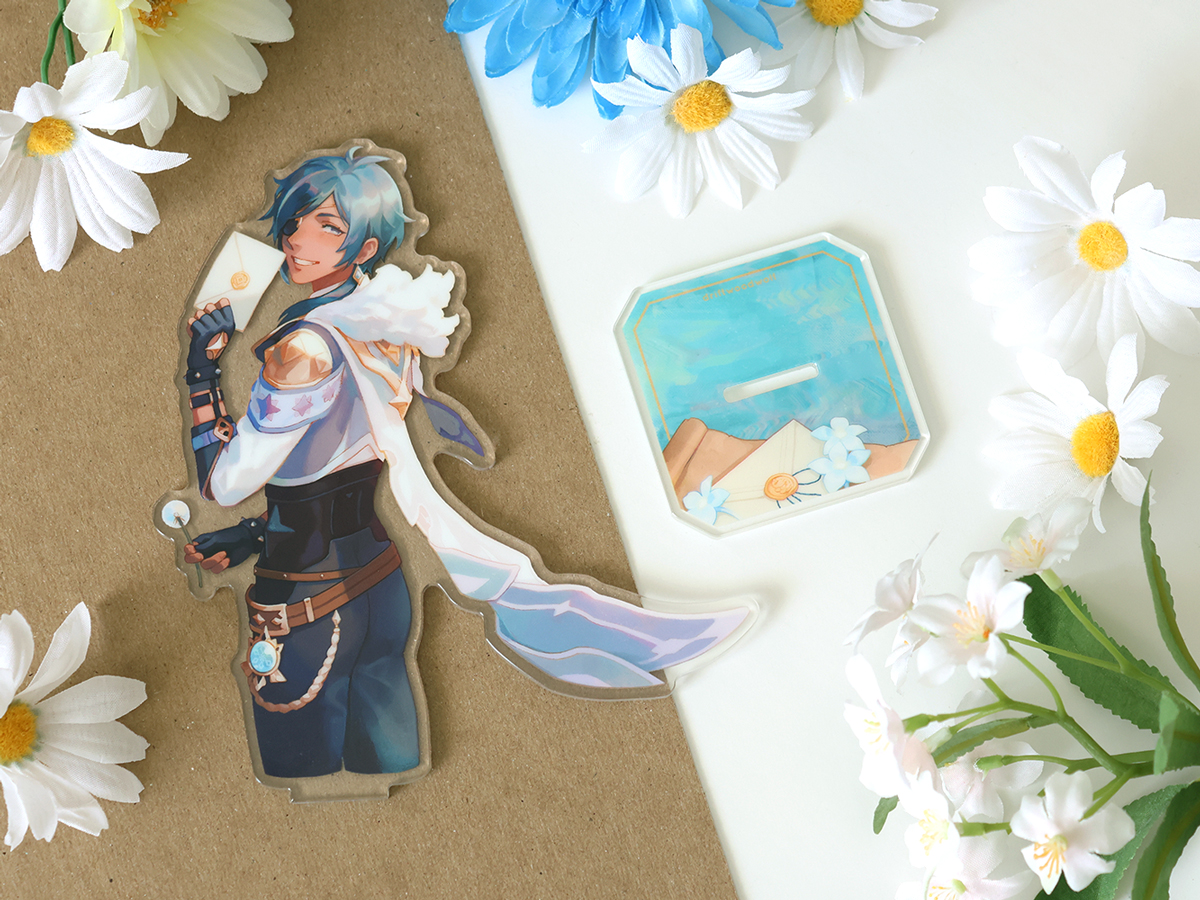 15 cm single-sided acrylic standee featuring Kaeya! The base is 6 cm wide.