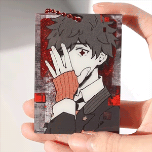 5 x 7 cm quicksand acrylic charm. Shake to see the red glitter fill the background and turn Ryuki's eye red! This charm comes with a red bead chain but can also stand on its own if you prefer.