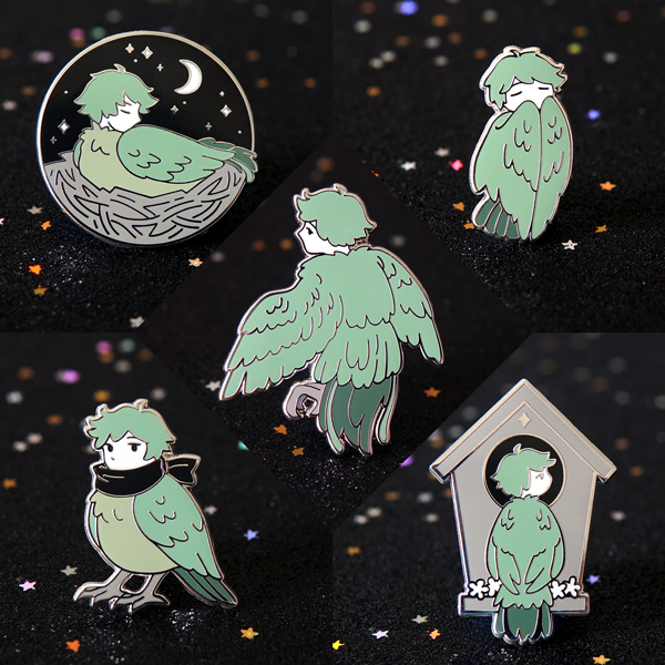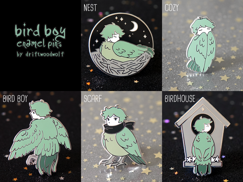 He's a bird, he's a boy, he's... a pin! These are hard enamel pins based on my Bird Boy illustration (prints of which are also available in my shop, if you are interested)! See second image for the names of each pin.