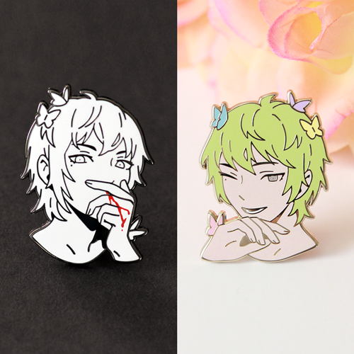 1.5" enamel pins featuring my butterfly boy original character, Luka!