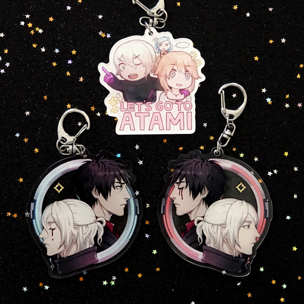 ATAMI: single-sided, non-transparent acrylic (white background), 2.5″ PSYNC: double-sided, clear acrylic, 3″