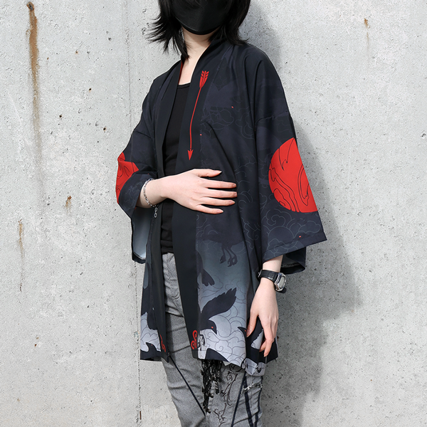 Lightweight and comfortable jacket featuring a three-legged crow (Yatagarasu) design. It's perfect for casual wear or as a statement piece. And yes, it has pockets!